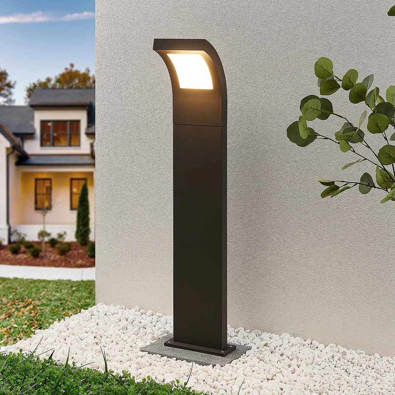 Zakrivené LED svietidlo na chodník Advik z hliníka s tmavosivým povrchom Advik zaujme najmä tých, ktorí hľadajú vonkajšie svietidlo do moderného priestoru, pretože hliníkové telo má moderný tvar. Šikmá hlava svetla vyžaruje svetlo príjemným spôsobom smerom nadol, čo vám umožní nájsť cestu po dvore alebo záhrade s neoslňujúcim svetlom, takže môžete okamžite rozpoznať nebezpečenstvo zakopnutia. Svetlo produkované LED diódami je jasné a vyznačuje sa dobrou účinnosťou, takže možno predpokladať nízku spotrebu energie. Vďaka vysokému stupňu krytia (IP65) možno svietidlo Advik bez obáv používať vo vonkajšom prostredí, pretože je vždy dobre chránené.