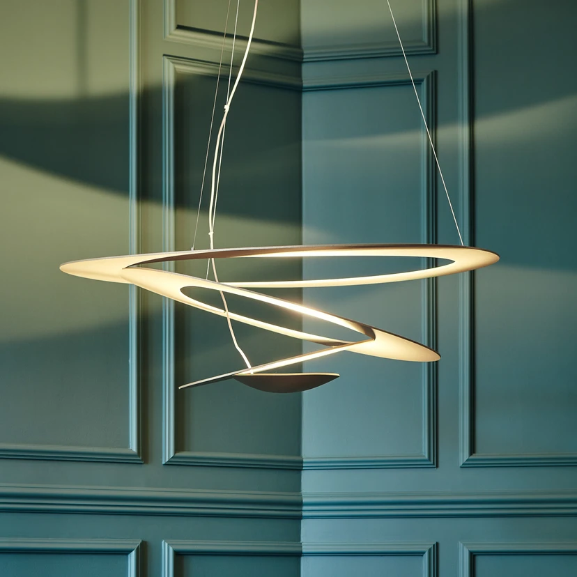 Dizajnové umenie v dokonalosti - závesné svietidlo Pirce LED Závesné svietidlo Pirce LED spája vysoké dizajnové umenie s inovatívnou technológiou. Je to zásluha jej tvorcu, dizajnéra Giuseppeho Maurizia Scutellu, ktorý vo svojich výtvoroch spája dizajnové a umelecké trendy minulého storočia s najmodernejšími technológiami. Zvláštnosťou svietidla Pirce je trojrozmerné tienidlo, ktoré pozostáva z hliníkového disku vyrezaného laserom. Výsledné organicky tvarované hliníkové disky sa šíria smerom nadol v špirále, čím vytvárajú filigránsky a umelecký vzhľad. Guiseppe Maurizio Scutellà navrhol sériu Pirce v spolupráci s výrobcom svietidiel Artemide. Vďaka umeleckému dizajnu patrí Pirce medzi predajnú klasiku a získalo už niekoľko ocenení za dizajn.