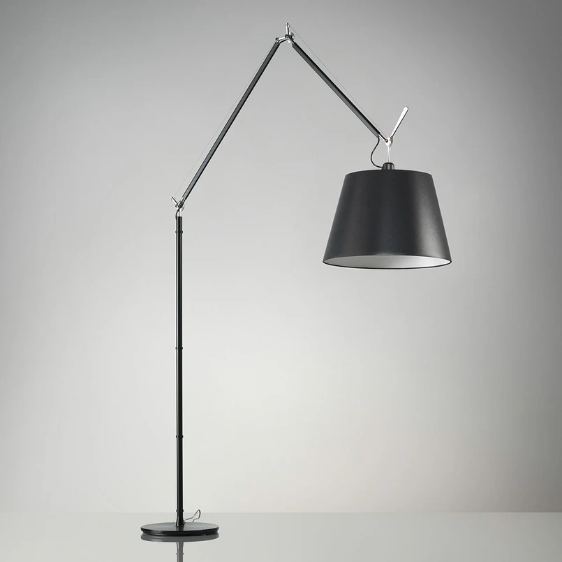 Stojacia lampa Tolomeo Mega s osvetlením LED - stmievateľná na hlavici Moderná a zároveň nadčasovo elegantná stojaca lampa Tolomeo Mega LED je vizuálne pôsobivá. Tienidlo z čierneho saténu visí na konci hlavy jej štíhleho hliníkového rámu, ktorý sa dá niekoľkokrát nastaviť. Šírka tienidla zabezpečuje, že vyžarované svetlo sa nielen rozprestiera na veľkej ploche, ale aj jemne presvitá cez čiernu látku dookola. Na hlavovom konci sa nachádza stmievač, ktorým možno podľa potreby regulovať intenzitu svetla. Navrhli Michele De Lucchi & Giancarlo Fassina: Títo dvaja talianski dizajnéri vytvorili stojaciu lampu Tolomeo Mega LED na základe rovnomennej stolovej lampy, ktorú navrhli už v roku 1986 a ktorá sa od svojho vzniku stala dizajnovou klasikou. Sériu svietidiel Tolomeo vyrába taliansky výrobca vysokokvalitných prémiových výrobkov Artemide.