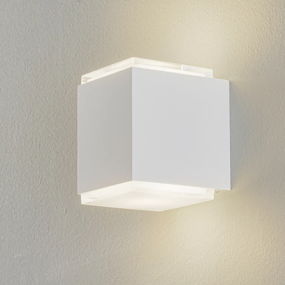 Nástenné svietidlo v tvare kocky s možnosťou stmievania DALI Toto kompaktné nástenné svietidlo LED je ideálne na akcentové osvetlenie v interiéri. Niekoľko svietidiel vedľa seba poskytuje aj správne orientačné osvetlenie na dlhej chodbe alebo schodisku. Teplé biele svetlo z trvalo nainštalovaných LED diód s vysokým indexom podania farieb vyžaruje smerom nahor a nadol cez kryty z krištáľového skla. Tie mierne vystupujú nad inak takmer kockový hliníkový kryt. Výrobca BEGA je vďaka svojim dlhoročným skúsenostiam považovaný za majstra vo vývoji a výrobe svietidiel. Vlastné postupy prispievajú k vynikajúcej kvalite výrobkov; moduly LED sú tiež vyvinuté vo vlastnej réžii - Odolnosť proti nárazu: IK07