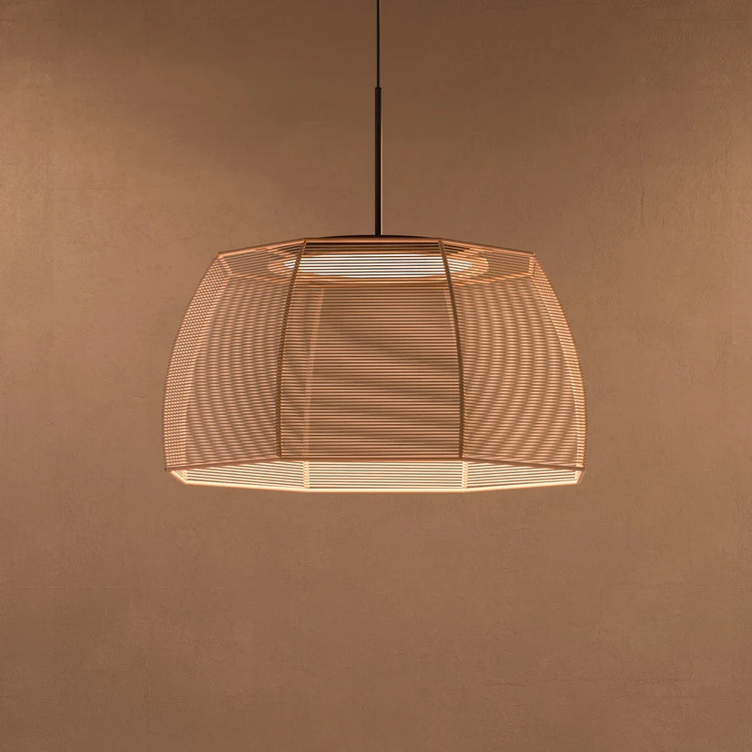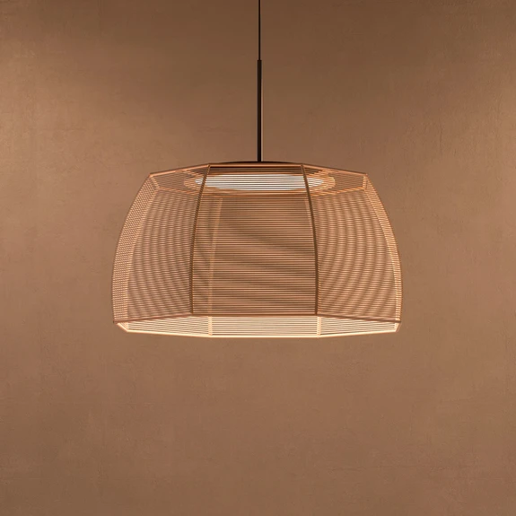 Závesné svietidlo Tanit LED s ručne tkaným tienidlom Závesné svietidlo Tanit LED je vhodné na ambientné alebo plošné osvetlenie v rôznych miestnostiach, ako je obývacia izba, jedáleň, chodba a spálňa. Integrovaný svetelný zdroj LED poskytuje atmosférické, teplé biele svetlo na útulné osvetlenie okolia. Závesné svietidlo Tanit LED, symbol sofistikovaného dizajnu, kombinuje vysokokvalitné materiály, ako je hliník a bavlna, a vytvára tak harmonický celkový vzhľad - externe stmievateľné (TRIAC)