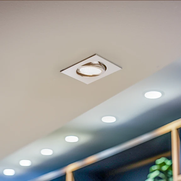 LED zapustené stropné svietidlo BB05, štvorcové, otočné, s fázovým rezom (RC), stmievateľné Zapustené stropné svietidlo BB05 je flexibilné stropné svietidlo pre suché interiéry - od kuchyne cez chodbu až po konferenčnú miestnosť. Má hranatý hliníkový rám a okrúhlu, nastaviteľnú hlavu svietidla. Na montáž do stropného otvoru je BB05 vybavené dvoma pridržiavacími pružinami. Zapustené stropné svietidlo nesmie byť zakryté tepelnoizolačným materiálom. - Vrátane dlhého LED meniča, stmievateľného prostredníctvom vypínania fázy (RC) - Uhol vyžarovania: 38° - Rozsah natočenia: 30° dookola - Hrúbka stropu: max. 1,3 cm