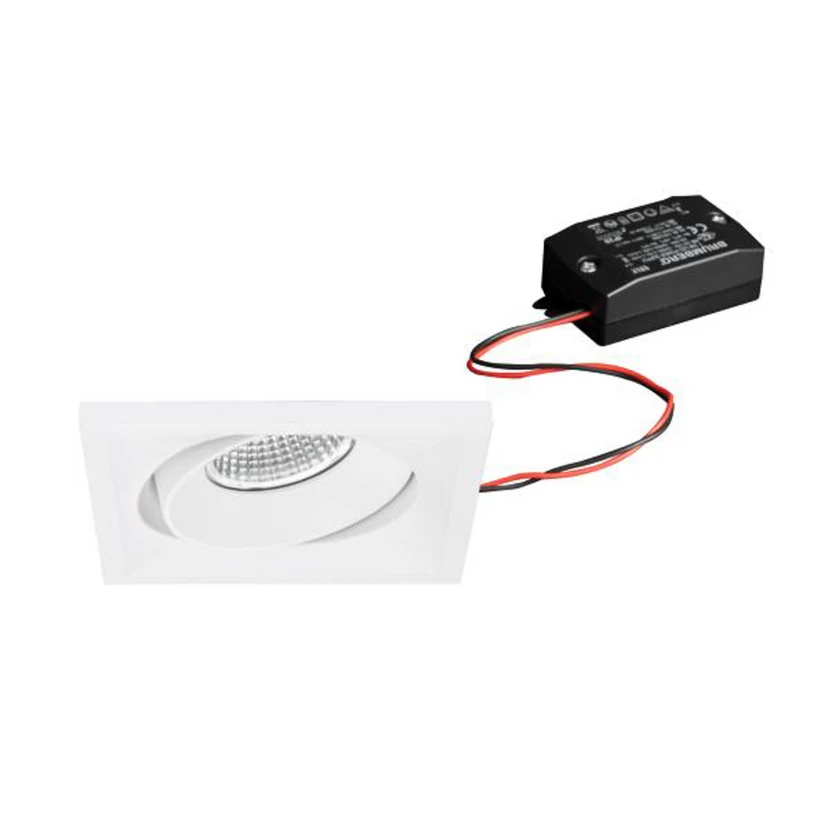 Štvorcové zapustené bodové svietidlo s integrovaným LED ovládačom BB38 je zapustené bodové svietidlo na montáž na strop bez použitia náradia pomocou zapustených pružín. Reflektor je strieborný s rotačne symetrickým hlbokým širokým rozložením svetla. Optimálne rozloženie svetla vďaka priehľadnému polykarbonátovému krytu. - Prípustná teplota okolia (ta): -20 °C - 25 °C - S elektronickým ovládacím zariadením, prepínateľné