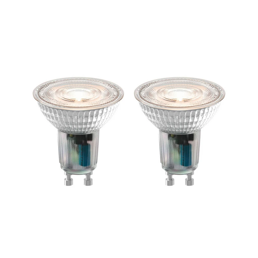 LED reflektor GU10 4,9 W s funkciou CCT, inteligentne ovládateľný, v dvojitom balení Tento LED reflektor GU10 sa dodáva vo výhodnom dvojitom balení. Je vybavený inteligentnou technológiou a možno ho inteligentne ovládať prostredníctvom aplikácie Calex, ktorá je bezplatne k dispozícii pre systémy Android a iOS, alebo prostredníctvom rôznych hlasových ovládacích prvkov. Reflektor s funkciou CCT možno nastaviť na rôzne farby svetla a stmievať ho. Funkcie / kompatibilita: - Ovládanie pomocou bezplatnej aplikácie Calex (pre Android a iOS) - Možnosť hlasového ovládania pomocou Amazon Alexa, Google Assistant a Siri Shortcuts - Farba svetla nastaviteľná v rozsahu od 2 200 K (teplá biela) do 4 000 K (univerzálna biela) - Stmievanie pomocou aplikácie alebo hlasového príkazu - WiFi 2,4 GHz