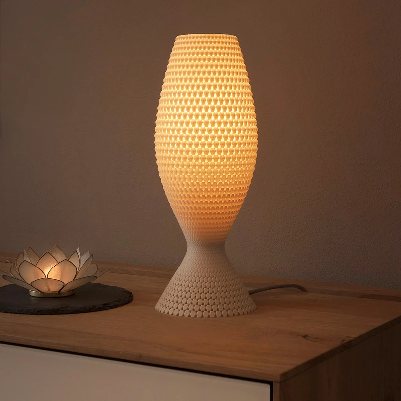 Béžová diamantová stolová lampa z 3D tlačiarne - s pekným výstupným vzorom