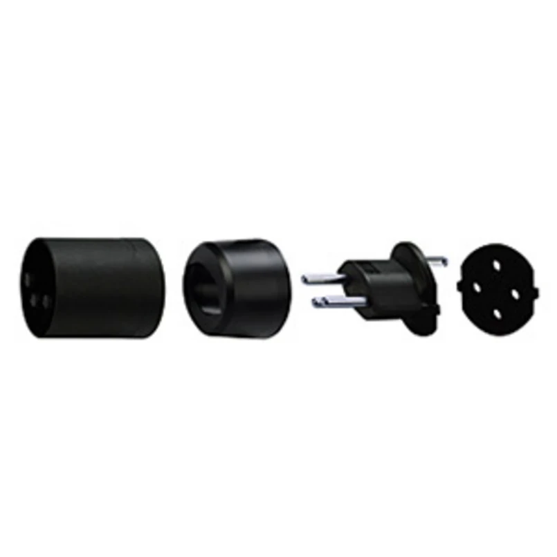 Adaptér FIX Švajčiarsko - Európa zmení rýchlo a bez akýchkoľvek náradia 3-kolíkovú zástrčku IP44 schuko na CH zástrčku T12. Vhodná do maximálnej hodnoty 2300 W/10A. Vhodná na zástrčku schuko DIN 49441-2 AR2.