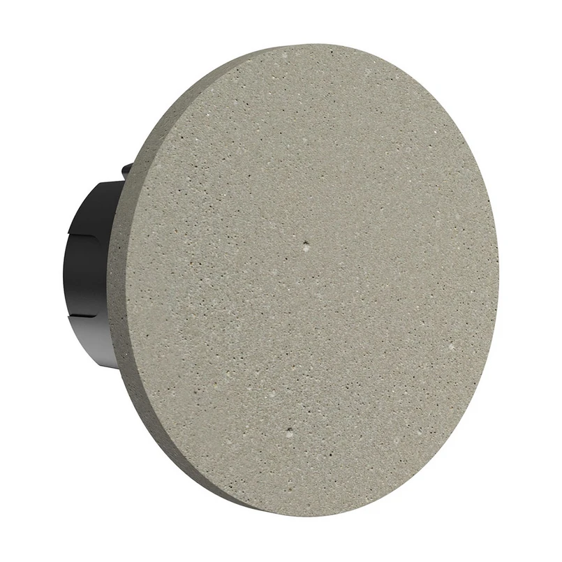 Okrúhle nástenné svietidlo LED Camouflage leží veľmi plocho pri stene a vyžaruje svetlo dozadu, čím vytvára jedinečný svetelný prstenec okolo svietidla a účinne tak osvetľuje fasádu. Okrúhly povrch svietidla bol navrhnutý inak. Pri verziách čadičový kameň, kameň Crema a betón bol tenký plát tohto materiálu nalepený na okrúhlu hliníkovú dosku pomocou mimoriadne odolného lepidla. Ostatné farebné verzie boli realizované dvojitým práškovým lakovaním. Predtým sa povrchy opieskovali, aby sa zabezpečila optimálna priľnavosť. Zatiaľ čo prvý epoxidový náter poskytuje ochranu pred mechanickými a chemickými vplyvmi, druhý práškový náter z polyesteru chráni pred UV žiarením a poveternostnými vplyvmi. K dispozícii je aj verzia len so základným náterom. Tú môžete ozdobiť vodovými farbami podľa vlastných predstáv alebo ju dokonca omietnuť.