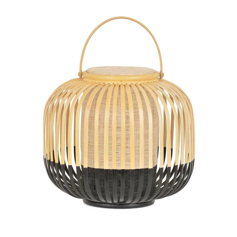 Či už na terase alebo balkóne, vo vonkajšom priestore reštaurácie alebo v súkromnom priestore, LED vonkajšie dekoratívne svietidlo Take A Way je ideálnym dekoratívnym osvetlením na stôl alebo na podlahu počas teplých letných nocí. Tienidlo na lampu je kompletne vyrobené z bambusu – ako výstuhy, tak aj vnútorný difúzor, ktorý obklopuje žiarovku. Praktická rukoväť v hornej časti umožňuje umiestniť svietidlo presne tam, kde ho práve potrebujete.