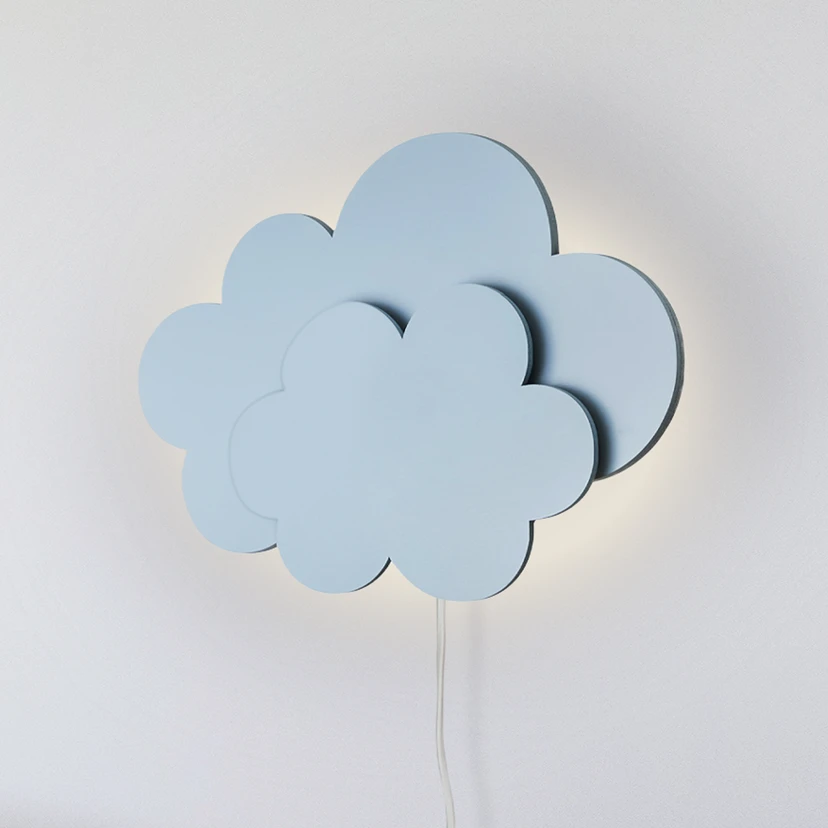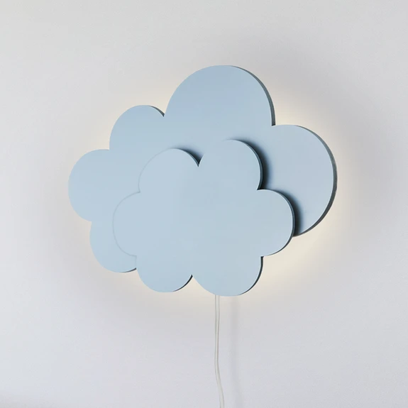 LED nástenné svietidlo Wölkchen so zástrčkou, modré, drevo, stmievateľné Čas dodania: 4 - 5 týždne