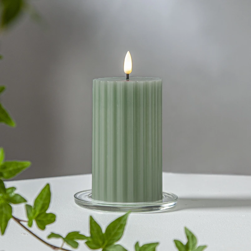 LED sviečka Flame Stripe zelená 15 cm z pravého vosku na batérie