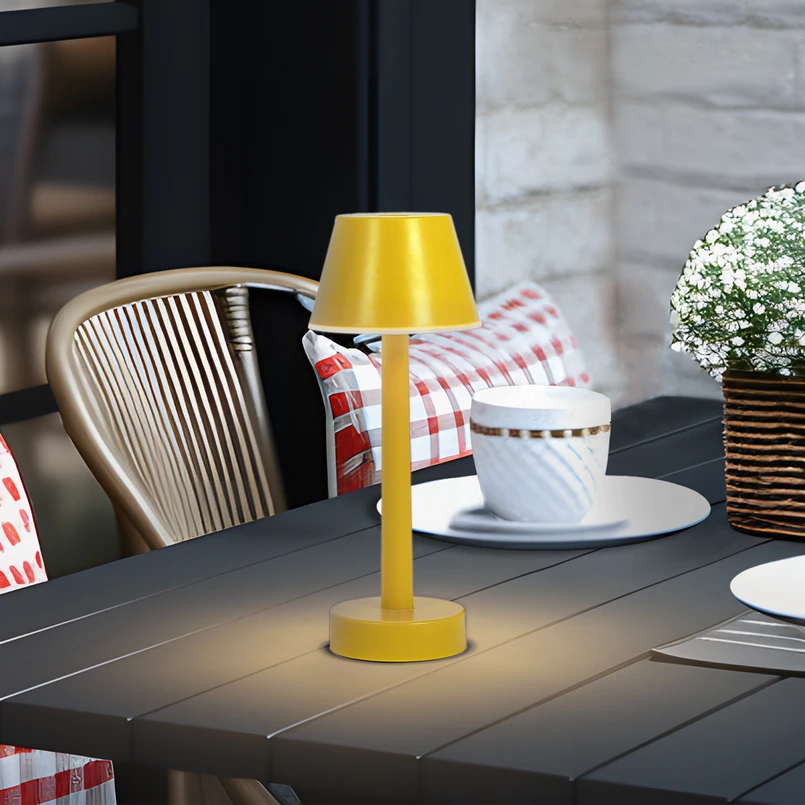 Lindby LED dobíjacie svetlo Gaja, žlté, USB, IP44, RGBW, stmievateľné