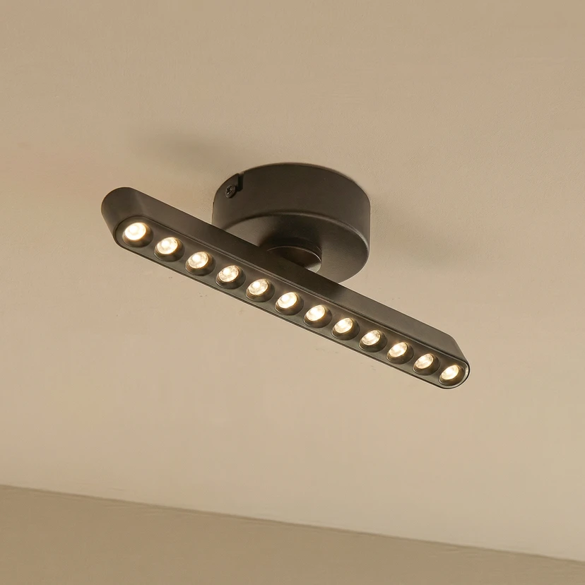 Čierny reflektor Eldrin LED zo železa s praktickou funkciou stmievania Reflektor Eldrin LED spája modernú estetiku s funkčnou technológiou osvetlenia. Jeho moderný dizajn sa bez problémov začlení do rôznych koncepcií miestností a je vhodný najmä do obývacích izieb, jedální a chodieb. Hlava svietidla je pohyblivá a možno ju otáčať o 350° a vychyľovať o 90°. Nástenný vypínač umožňuje zapínanie a vypínanie reflektora ako zvyčajne. Vďaka technológii trojstupňového stmievania s integrovanou funkciou vypnutia ho možno stlmiť aj na tri rôzne úrovne jasu niekoľkonásobným stlačením spínača: 100 %, 50 % a 10 %.