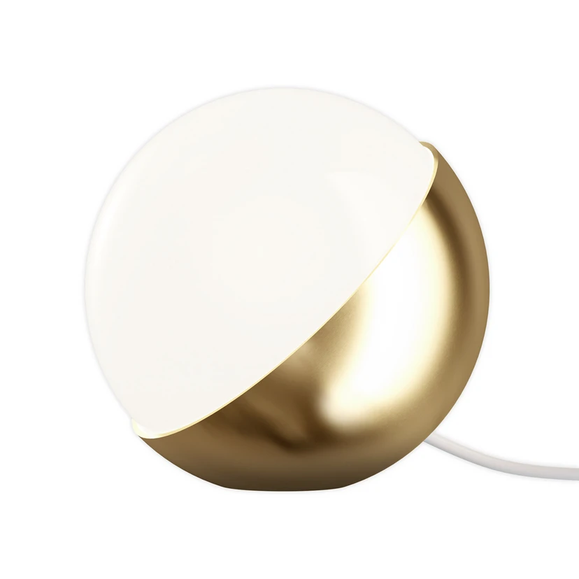 Stolová lampa VL Studio z mosadze a bieleho opálového skla s káblovým spínačomVďaka svojmu malému priemeru sa stolová lampa VL Studio ľahko hodí do rôznych obytných priestorov a prostredí. Svoje miesto nájde napríklad v obývacej izbe, v spálni, v predsieni na poličkách alebo na parapetoch. Súhra mosadzného krytu a trojvrstvového opálového skla dodáva stolnej lampe ušľachtilý vzhľad, ktorý skrášli každé prostredie. Ak chcete vymeniť žiarovku, stačí odskrutkovať sklo. Dizajn kolekcie svietidiel VL Studio pochádza od Vilhelma Lauritzena a je mimoriadne presvedčivý vďaka vysokokvalitným materiálom a jednoduchej estetike, s ktorou sa dobre hodí do rôznych prostredí. Za výrobu je zodpovedný renomovaný dánsky výrobca svietidiel Louis Poulsen.Poznámka: Neošetrená mosadz sa časom mení a získava patinu.