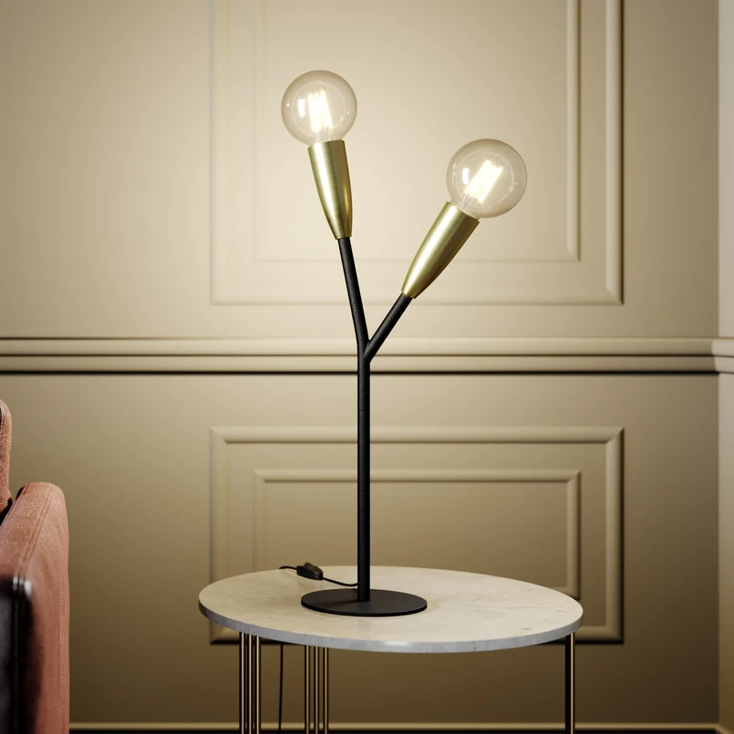 Carlea je stolová lampa s moderným dizajnom a výnimočne štýlovým vzhľadom. Vzhľadom trochu pripomína konáre, i keď v modernej abstrakcii. Podstavec lampy a teleso sú čierne, zatiaľ čo obidva prvky majú na objímkach elegantný medený odtieň a vyvolávajú pôsobivý farebný kontrast. Keďže nemajú žiadne tienidlá ani nič podobné, je žiarovky E27 je veľmi dobre vidieť. Preto by sa mali vyberať s mimoriadnou starostlivosťou, aby sa hodili k celkovému dizajnu Vláknové alebo rustikálne žiarovky LED sú na tento účel vždy vhodnou voľbou, pretože ich žiarovka vyzerá dobre.
