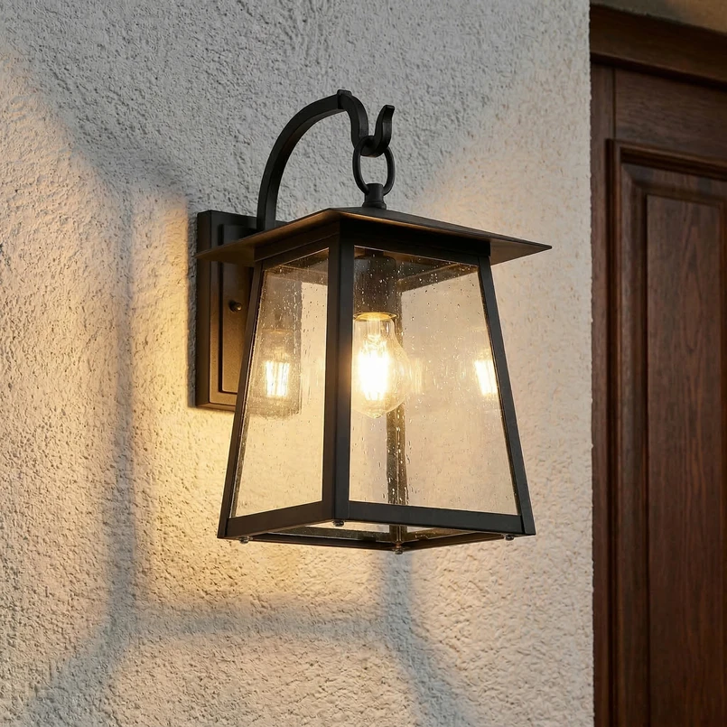 Lucande Vonkajšie nástenné svietidlo Xavon, čierne, lucerna, E27, IP44