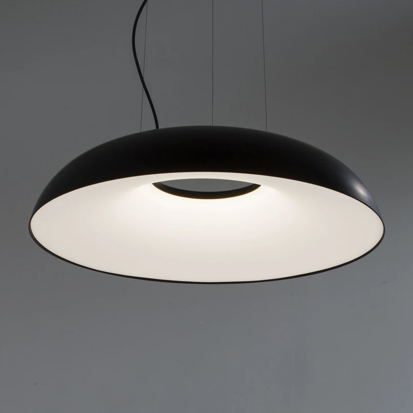 Jednolamelové, harmonické závesné svietidlo Maggiolone LED Toto závesné svietidlo kombinuje nenáročný dizajn a príjemné svetlo, vďaka čomu je vynikajúcou voľbou na osvetlenie stola alebo plochy v moderných obývacích izbách a salónoch. Štruktúra tienidla má tvar mierne zakrivenej kupoly s centrálnym výrezom a je vyrobená z farebného lakovaného hliníka. Difúzor z opálového metakrylátu zaberá celú vnútornú plochu, rovnomerne rozptyľuje svetlo z integrovaných LED diód a poskytuje široké, rozptýlené osvetlenie priestoru pod ním. Svetelný výkon možno voliteľne ovládať prostredníctvom externého ovládania DALI/Push. Séria svietidiel Maggiolone je navrhnutá a vyrobená z jedného zdroja. Dizajn vytvorila Emiliana Martinelli, ktorá je zároveň šéfkou talianskeho výrobcu Martinelli Luce - LED ovládač integrovaný v baldachýne