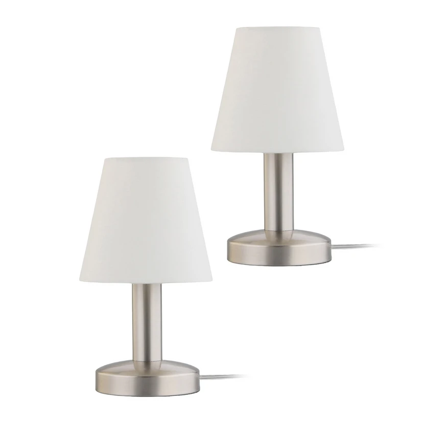 Nadčasová nočná lampa Hanno s bielym tienidlom v praktickej súprave 2 ks Hanno je vhodná na mnohé nočné stolíky, ale jej použitie sa neobmedzuje len na to, pretože ju možno použiť aj na iných miestach, napr. na parapete alebo dekoratívnej komode. Biele tienidlo poskytuje mimoriadne príjemné svetlo s útulným charakterom a Hanno je vždy dobrým odporúčaním ako doplnkové alebo akcentové osvetlenie vo večerných hodinách. Svetlo sa dá zapnúť a vypnúť v niekoľkých jednoduchých krokoch pomocou dotykovej funkcie - svetlo sa dodáva v súprave 2 kusov