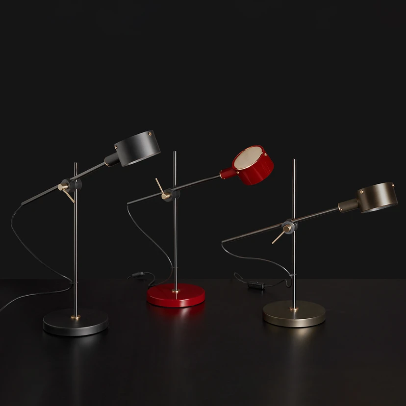 LED stolná lampa G.O. 252 od Giuseppe Ostuniho, viacnásobne nastaviteľnáStolná lampa G.O. 252 je novou edíciou modelu, ktorý Giuseppe Ostuni navrhol pre spoločnosť Oluce už v 60. rokoch 20. storočia. Vo svojej dizajnovej podstate je stále mimoriadne aktuálny a vďaka svojim jasným líniám a rafinovaným detailom, ako aj viacerým možnostiam nastavenia predstavuje dekoratívny zdroj svetla do obývačky alebo aj na pracovný stôl. G.O. je rodina svietidiel, ktorá si zachováva štylistické prvky pôvodného výrobku, ako napríklad valcovité tienidlo. Novú edíciu zdobia rafinované detaily v saténovo zlatej farbe, ktoré kontrastujú s čiernou tyčou a farbami podstavca a tienidla.Rameno je vďaka kĺbovému systému posuvným prvkom, ktorý sa umiestňuje a nastavuje podľa potreby. Hlava lampy je tiež nastaviteľná, aby vždy zabezpečila dokonalé osvetlenie, či už ako lampa na čítanie v obývacej izbe, alebo ako pracovná lampa na stole.