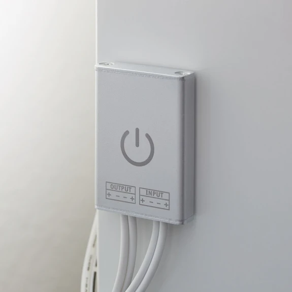 Jednoduchým dotykom tohto dotykového spínača možno zapínať a vypínať existujúci LED pás MaxLED. Ak je spínač podržaný, stmievanie je plynulé. Pamäťová funkcia po opätovnom zapnutí aktivuje naposledy zvolený svetelný výstup, takže ho nie je potrebné zakaždým nastavovať znova. Ideálne na vytvorenie atmosférického osvetlenia pozadia vitrín alebo nábytku.