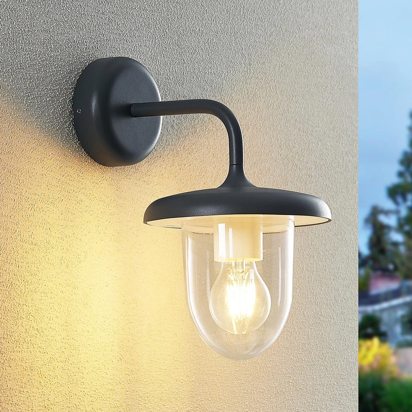 Vonkajšie nástenné svietidlo Larkumi sa dodáva v tmavom dizajne a je ideálne na osvetlenie vchodov do domu, garáží alebo terás. Má dobre tvarované tienidlo, cez ktoré používateľ dobre vidí na používanú žiarovku E27. Preto by mala byť žiarovka vhodne dekoratívna, aby dopĺňala osobitý charakter tohto svietidla. Tmavosivé prevedenie sa dá kombinovať s mnohými farebnými konceptmi a na stene domu pôsobí elegantne.