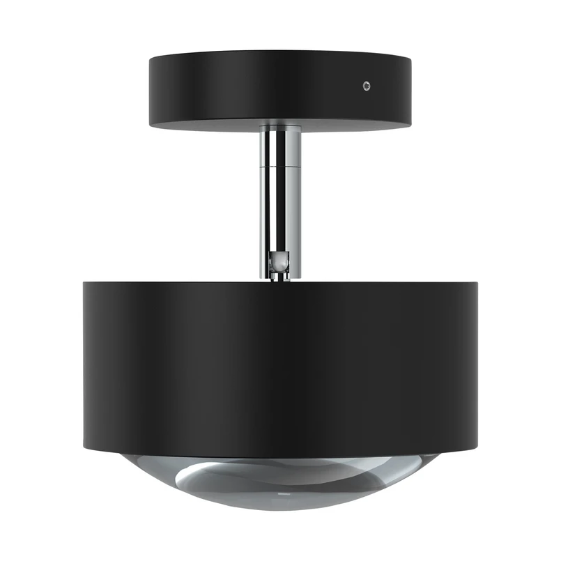 Pohyblivý stropný LED spot Puk Maxx Turn - jednoduché stropné svietidlo s čírou sklenenou šošovkou LED spot Puk Maxx Turn sa skladá z malého okrúhleho vrchlíka, štíhleho ramena s kĺbom a okrúhlej hlavy svietidla s čírou sklenenou šošovkou. Táto kvalitná a jednoduchá kombinácia sa vyznačuje funkčnosťou a modernosťou. Šošovka poskytuje cielený, výrazný svetelný kužeľ, ktorý dokáže zámerne a akcentovane zvýrazniť objekty a plochy. Kĺb zabezpečuje flexibilné nastavenie svetelného lúča, čo umožňuje otáčanie a natáčanie hlavy svietidla - Stmievateľné prostredníctvom fázového stmievača na zadnej hrane Farebné zvýraznenia možno vytvoriť pomocou voliteľných farebných filtrov umiestnených pod šošovkou.