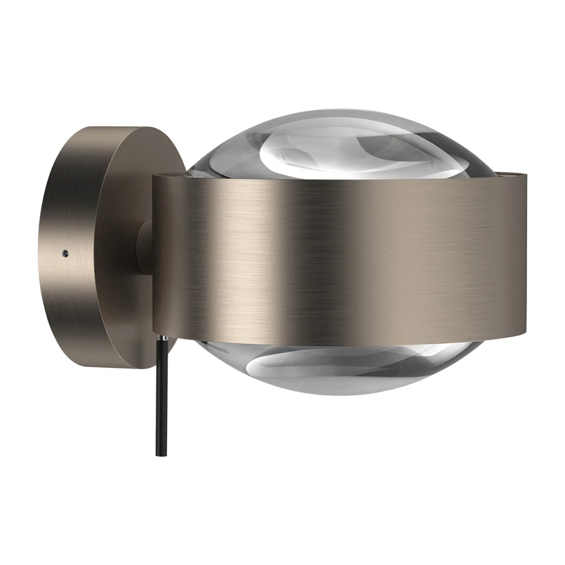 Moderné nástenné svietidlo Puk Maxx Wall + s dvoma čírymi šošovkami, otočné Táto atraktívne navrhnutá klasika zo série svietidiel Puk obohatí vďaka svojmu modernému poňatiu mnohé obytné prostredia. Puk Maxx Wall + je nástenné svietidlo s päticou G9, ktoré zaujme jednoduchým kovovým dizajnom a má svetelný lúč smerujúci nahor a nadol. Dve vložené sklenené šošovky dodávajú výslednému svetelnému kužeľu ostrý, jasný okraj, ktorý premieta na stenu. Hlavicu možno otáčať pomocou malého nastavovacieho kolíka na kryte, čo umožňuje prispôsobiť smer svetla. Pod sklenené šošovky možno voliteľne umiestniť rôzne farebné filtre, ktoré farebne zvýraznia atmosféru.