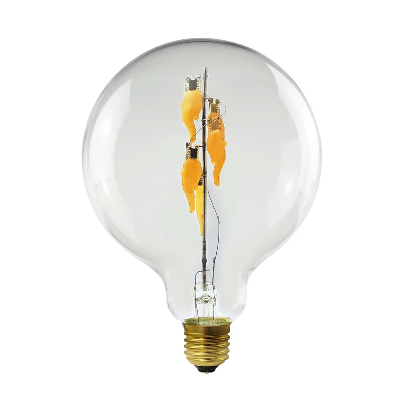 Táto LED žiarovka v tvare gule s päticou E27 a priehľadným sklom z rady Fire Flame Line od SEGULA poskytuje dekoratívne efektové osvetlenie v interiéri aj exteriéri. Dokonale imituje plameň a svojím jemným blikáním pripomína svetlo skutočnej sviečky, avšak bez nebezpečenstva, ktoré predstavujú skutočné plamene. Žiarovka je určená na zavesenie do závesných svietidiel alebo do smerom nadol orientovaných pätíc v nástenných svietidlách.