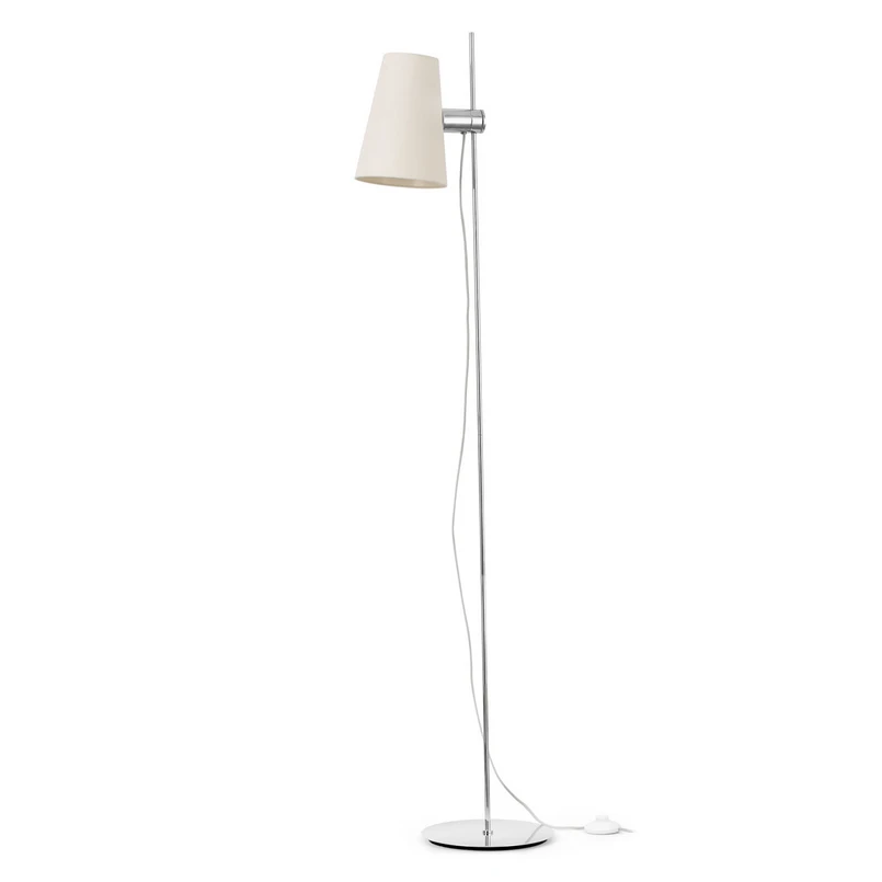 Dizajn je dosť rezervovaný a klasický. tienidlo na lampu s objímkou E27 je pripevnené k rovnej, lesklej chrómovej kovovej tyči. To sa teraz dá ľahko nastaviť pozdĺž tyče a umožňuje tak nastavenie svetelného zdroja v rôznych výškach. Či už je svetlo potrebné na čítanie v kresle o niečo nižšie alebo vyššie na podsvietenie obývacej izby, s inovatívnou technológiou sa to dá kedykoľvek zmeniť bez veľkého úsilia. Efekt jemného osvetlenia, ktorý vytvára béžový textilný odtieň, vytvára príjemné prostredie. Štýlový, elegantný a napriek tomu veľmi moderný.