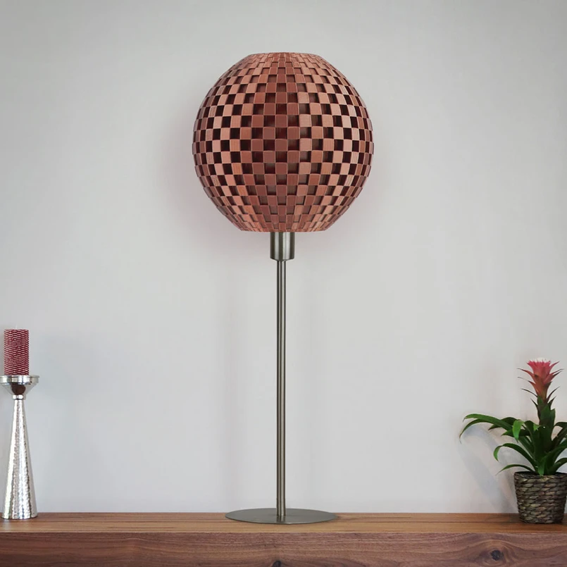 Stolná lampa Flechtwerk guľa s podstavcom, medená
