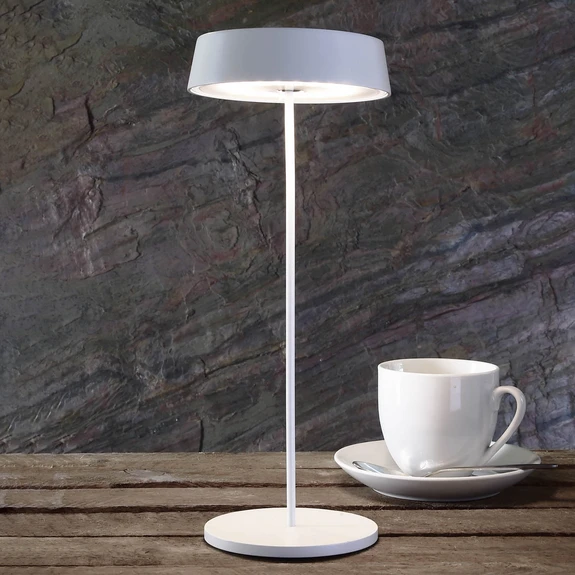 Dobíjacia lampa Miram - prenosná stolná LED lampa so stmievačom Stolná LED lampa Miram je vyrobená z vysokokvalitného tlakovo liateho hliníka a zaujme svojím štíhlym, elegantným tvarom. Túto jednoduchú eleganciu podčiarkuje jednotná farebná schéma. Teplé biele LED diódy sú integrované do okrúhlej plochej hlavy svietidla a nachádzajú sa za bielym krytom pod tienidlom, pričom vyžarujú priame neoslňujúce svetlo smerom nadol. Hlava obsahuje aj nabíjateľnú batériu, vďaka ktorej je svietidlo úplne flexibilné. Vďaka vysokému stupňu ochrany sa môže bez problémov používať v exteriéri a slúži ako prenosné svietidlo napájané z batérie. Oblasti jeho použitia sa prakticky medze nekladú - či už ako zvýraznenie v detskej izbe, ako doplnkové osvetlenie na pracovnom stole alebo na relaxačné hodiny na terase, Miram poskytuje rovnako vhodné svetlo, ktorého jas možno nastaviť aj pomocou integrovaného dotykového stmievača. Batériu, ktorá sľubuje až 10 hodín svietenia, možno jednoducho dobíjať pomocou nabíjacieho kábla USB-C. Vďaka magnetickému pripevneniu tienidla k štíhlemu rámu ho možno na dobíjanie vziať aj samostatne - Doba svietenia až 10 h - Plynulá regulácia stmievania pomocou integrovaného dotykového spínača - Nabíjanie prostredníctvom pripojenia USB-C