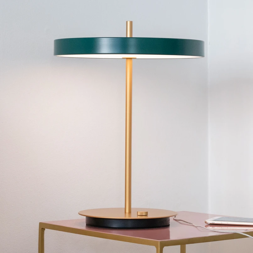 Stolná LED lampa UMAGE Asteria Table, USB, lesná zelená/mosadz