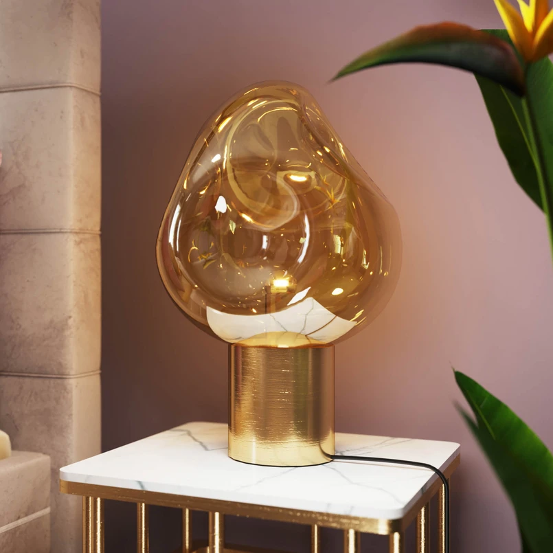 Stolová lampa KARE Dough so skleneným tienidlom, zlatá