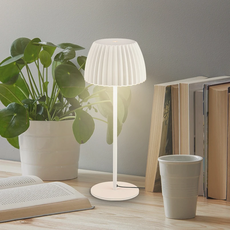 Veľmi dekoratívny je osvetlený okraj tienidla na lampu. Akumulátorová lampa je vybavená USB káblom (bez sieťovej zástrčky).
