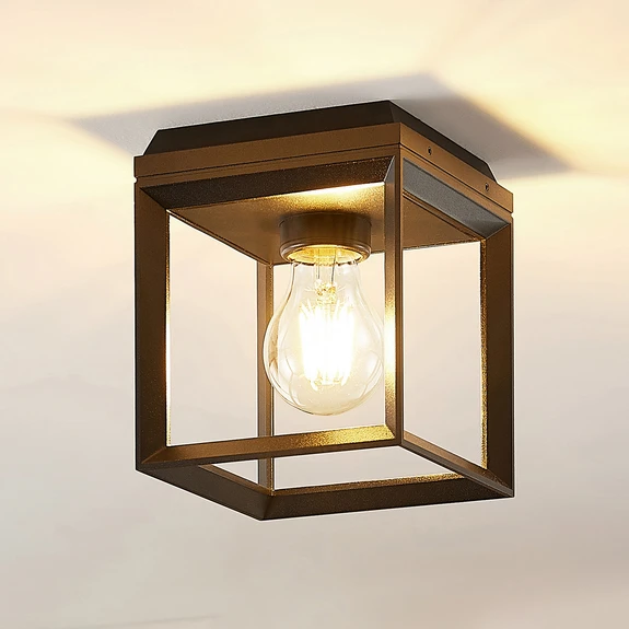 Stropné svietidlo Cayla v tvare klietky s matným čiernym povrchom a tvarom pripomínajúcim kocku Cayla je stropné svietidlo, ktoré má obľúbený vzhľad klietky a zároveň pripomína kocku. Nemá klasické tienidlo ako také, namiesto toho matný čierny rám tvorí rám z úzkych vzpier. Vďaka tomu je pohľad na vnútro svietidla v podstate nerušený. Vďaka tomu je ľahko vidieť použitý svetelný zdroj E27, ktorý by preto mal mať štýlový, zodpovedajúci vzhľad. Odporúčanie preto jednoznačne hovorí v prospech energeticky úsporných LED žiaroviek so žiarovkovým vzhľadom, ktoré spájajú moderný vzhľad s klasickým vzhľadom. Guľové žiarovky s dizajnom G80 a väčším priemerom sa tiež veľmi dobre hodia k celkovému dizajnu stropného svietidla, ktoré stelesňuje príťažlivý vintage štýl.