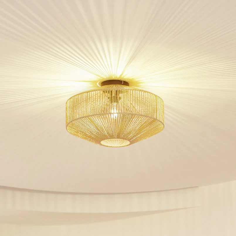 Stropné svietidlo Sorino s tkaným papierovým lanom - rustikálny dizajn pre vaše štyri steny Stropné svietidlo Sorino kombinuje robustné železo s papierom a vytvára rustikálnu atmosféru, ktorá obývačky, jedálne a chodby zalije teplým svetlom. Kombinácia materiálov a vidiecky štýl svetla vytvárajú útulnú atmosféru, ktorá vás pozýva na dlhšie zotrvanie. Stropné svietidlo možno vybaviť stmievateľnými zdrojmi svetla (nie sú súčasťou balenia), čo umožňuje flexibilné osvetlenie. Toto stropné svietidlo premení každú miestnosť na oázu relaxu a pohody.
