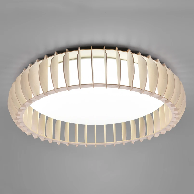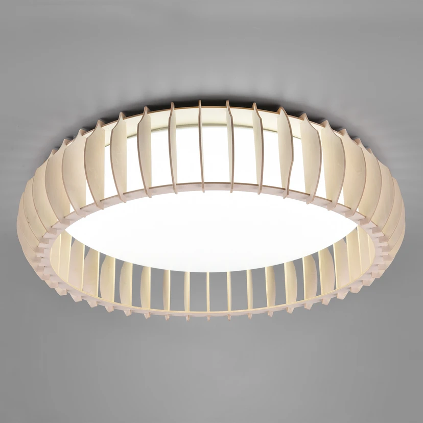 Stropné svietidlo Monte LED s diaľkovým ovládaním Okrúhle stropné svietidlo Monte zaujme nielen plynulou reguláciou farby svetla, ale aj integrovaným stmievačom a diaľkovým ovládaním. Vďaka týmto funkciám možno svetlo zo stropného svietidla Monte ľahko prispôsobiť nálade a celkovým svetelným podmienkam. Vďaka jednoduchému dizajnu s modernými drevenými prvkami ho možno použiť v mnohých miestnostiach.