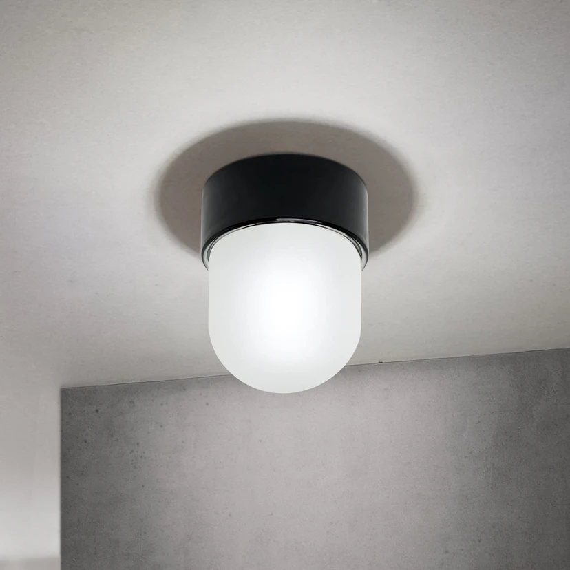 Stropné svietidlo Ostia, čierne, keramika, sklo satinované, E27