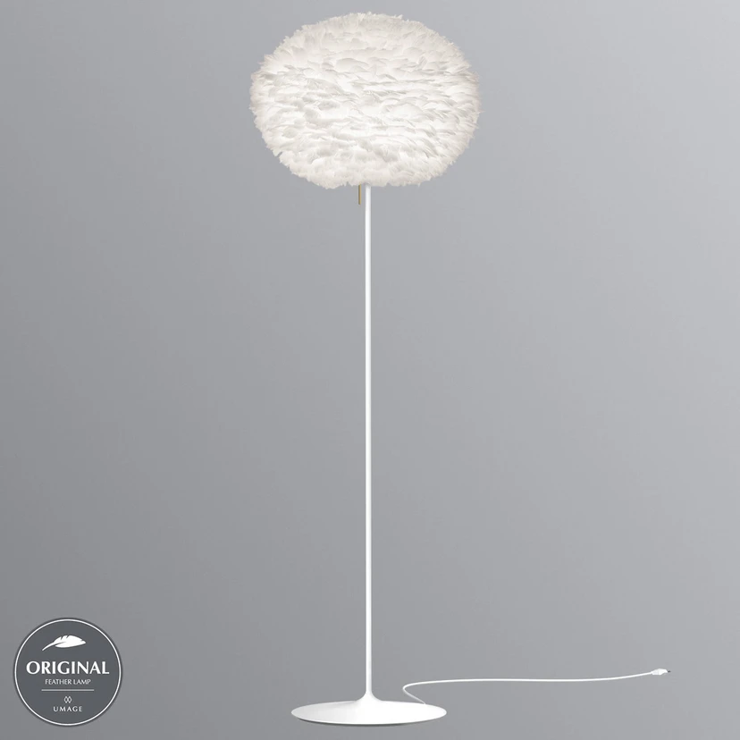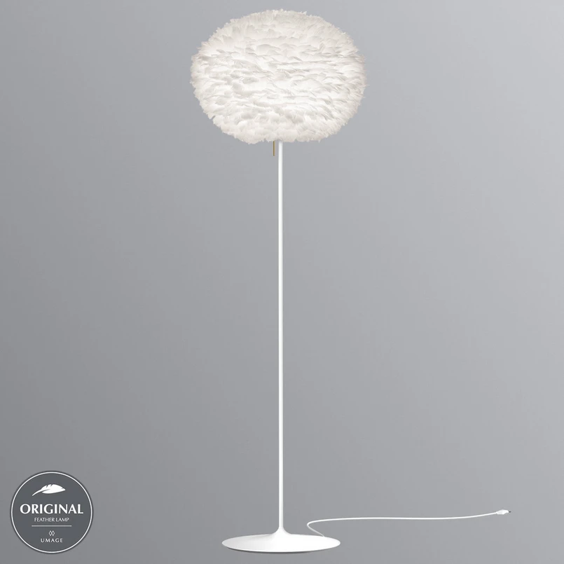Dizajnová stojacia lampa Eos veľká s bielym tienidlom z husacieho peria