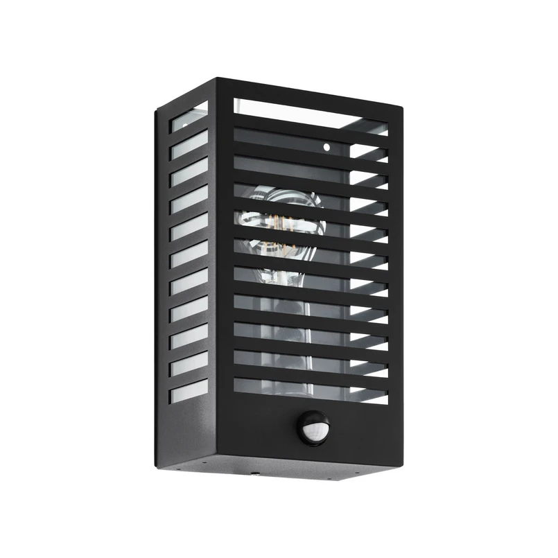 Vonkajšie nástenné svietidlo Alamonte 3, čierne, so senzorom