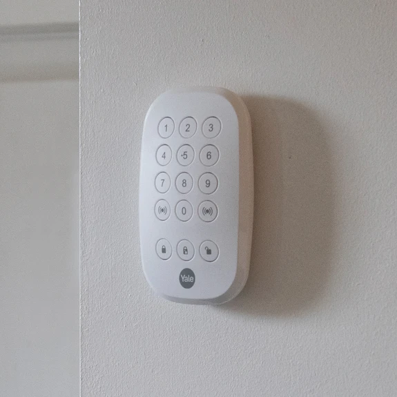 Klávesnica Yale Sync ponúka úplné ovládanie alarmu aj bez aplikácie. Môže byť integrovaný do existujúceho poplachového systému Yale Sync a umožňuje zapnutie a vypnutie alarmu nezávisle od aplikácie. Okrem toho je možné prostredníctvom klávesnice spustiť núdzový alarm, ktorý sa dá opäť deaktivovať len pomocou používateľského PIN kódu.