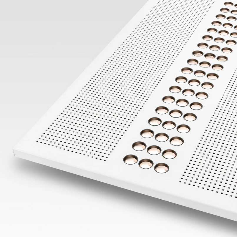Univerzálne biele pracovné osvetlenie v kancelárii - vstavaný panel Optico LED pre modulárne stropy 62,5 x 62,5 cm, stmievateľný DALI, tlmiaci zvuk Biely panel Optico LED je pôsobivý funkčný svetelný zdroj na zabudovanie do modulárnych stropov s viditeľným T-profilom. Optico poskytuje homogénne, širokouhlé svetlo (60°) s nízkym oslnením (UGR < 16) a možno ho použiť aj nad počítačovými pracoviskami. Kryt je vyrobený z hliníka; LED diódy sú usporiadané v dvoch plochách s mikropointovou optikou. Špeciálnou funkciou je akustické svietidlo s povrchom pohlcujúcim zvuk, ktoré znižuje dopadajúci hluk o 50 % a vytvára príjemnú akustiku v miestnosti. - s LED konvertorom s možnosťou stmievania DALI - pripravené na pripojenie do siete - tepelný manažment s tvarovo integrovaným pasívnym chladením - bez UV žiarenia a tepelného žiarenia - víťaz German Design Award 2019