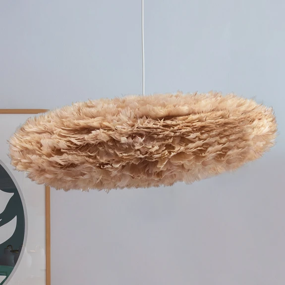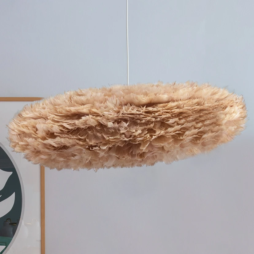 Oválne závesné svietidlo Eos Esther v tvare oblaku Závesné svietidlo Eos Esther vyrobené z pravého husieho peria má svoj názov v gréckej mytológii. Eos je bohyňa úsvitu a návrh dánskeho dizajnéra Sørena Ravna Christensena tak vytvoril spojenie s mrakmi plávajúcimi po oblohe - presne tak sa pozorovateľovi javí svietidlo Eos Esther. Oblak, ktorý vyžaruje ľahkosť, čistotu a dôveru. Svietidlo Eos Esther vytvára útulný pocit bezpečia, ktorý navodzuje pocit pohody a rozjasňuje miestnosť. Vďaka svojmu štíhlemu a elegantnému tvaru je ideálne na jedálenský stôl, ale jeho vyžarovanie vytvára príjemné chvíle aj v spálni. Lúč svetla prechádza cez perie v neoslňujúcej žiari dookola a vytvára príjemnú a atmosférickú atmosféru. Vďaka nastaviteľnej drôtenej konštrukcii ho možno zavesiť v štyroch rôznych uhloch, čo mu dodáva vzrušujúcejší a živší vzhľad. Perá sa dajú rýchlo a jednoducho vyčistiť bežným fénom. Dánsky výrobca osvetlenia UMAGE vyrába estetické dizajnové svietidlá, ktoré sú silne ovplyvnené škandinávskym štýlom a krajinou, od roku 2008. UMAGE vytvára umelecké diela, ktoré sú udržateľné, funkčné a moderné - nepoužíva sa pri nich perie zo živých zvierat