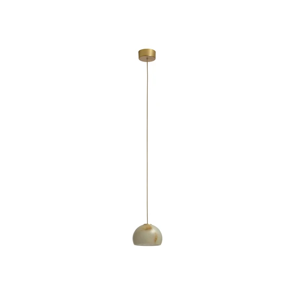 Elegantné závesné svietidlo LED Neil s okrúhlym tienidlom z alabastru a zlatým závesomV súkromných obývacích izbách, reprezentatívnych obchodných priestoroch, ako aj v hoteloch a reštauráciách presvedčí jednoplameňové závesné svietidlo LED Neil od španielskeho dizajnéra Xaviera Solého ako ušľachtilý zdroj svetla. Tienidlo je otvorená guľa z mramorovaného, svetlého alabastru a ukrýva teplý biely svetelný zdroj LED. Okrem toho je na tienidle, vrchnáku a kábli umiestnený záves s uzáverom v zlatej farbe