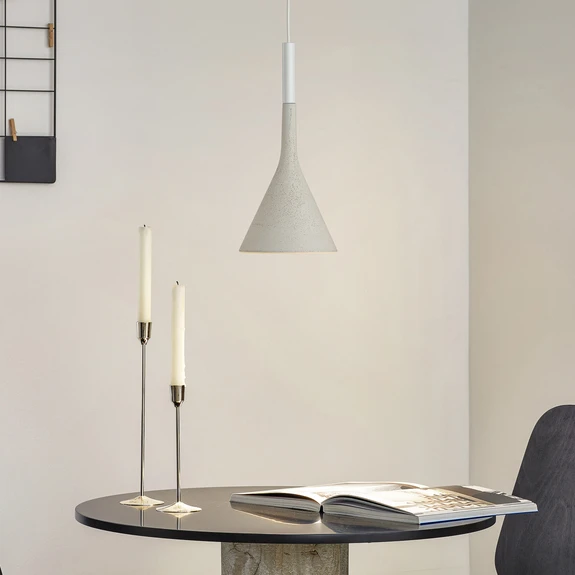 Pre priame a presné osvetlenie - závesné svietidlo Foscarini Aplomb Za tento špeciálny dizajn, ktorý bol vyvinutý pre spoločnosť Foscarini, sú zodpovední dvaja talianski dizajnéri Paolo Lucidi a Luca Pevere. Títo dvaja milánski dizajnéri sú vždy pripravení na výzvu vyvíjať nové typy výrobkov a vždy hľadajú nové alebo neobvyklé materiály či výrobné technológie. Aplomp vznikol s cieľom otestovať betón ako materiál pre svietidlo. Vzrušujúca zmes architektonických a dizajnových prvkov spája hotové závesné svietidlo, ktoré je vyrobené zo špeciálnej cementovej zmesi. Pridaním rôznych farebných pigmentov do cementovej zmesi na tienidlo sa vytvorili nové interpretácie pôvodne pomerne matného a sivého materiálu. Aplomb ako malé závesné svietidlo poskytuje priame zónové osvetlenie, ktoré umožňuje bodové osvetlenie povrchu pod ním. Je preto ideálne na jedálenský stôl alebo ako osvetlenie pultu.