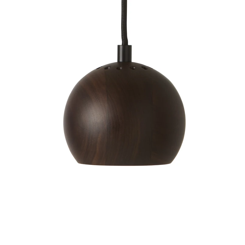 Závesné svietidlo FRANDSEN Guľa, orech, Ø 12 cm, drevo