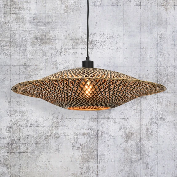 Prírodná, udržateľná závesná lampa Bali z bambusu Tienidlo tejto závesnej lampy je vyrobené z pevného, stabilného bambusu a pôsobí veľmi prirodzene. Bali je utkané z čierneho a prírodne sfarbeného materiálu a má jedinečný, vzrušujúci vzor, ktorý vyniká najmä vďaka farebnému kontrastu. Svetlo môže unikať priamo cez nenápadný okrúhly otvor na spodnej strane tienidla, ktorý má takisto okrúhly tvar. Okrem toho vzor prútia vytvára medzery, cez ktoré sa svetelný lúč jemne rozptyľuje po celej miestnosti, čím vytvára atmosférický svetelný vzor, ktorý vytvára útulnú atmosféru. Bambus sa považuje za mimoriadne udržateľný materiál, pretože veľmi rýchlo dorastá, aj keď sa opakovane strihá. Rýchlorastúce druhy môžu napríklad v priebehu 24 hodín dosiahnuť výšku až 100 cm. Okrem kampane, v rámci ktorej sa za každé predané svietidlo vysadí jeden strom, sa holandský výrobca svietidiel It's about Romi so svojou udržateľnou značkou Good & Mojo angažuje predovšetkým v tom, aby ľudia žijúci v krajinách, ako je Vietnam, ktoré sa vyznačujú chudobou, dostali šancu zarobiť si na živobytie. Preto majú veľa výrobkov ručne vyrobených ľuďmi v malých komunitách. Takto sa udržiava nielen remeslo, ale aj tradícia a každý výrobok zostáva jedinečný.