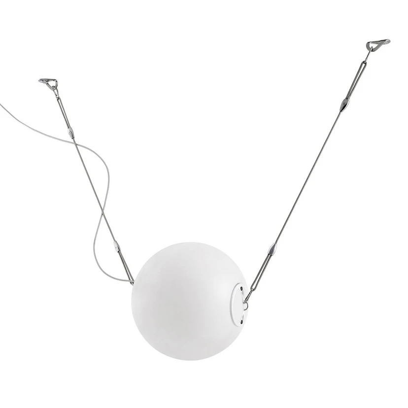Perla je závesná lampa so špeciálnym zavesením. Ručne fúkané sférické tienidlo z opálového bieleho skla je na boku držané dvoma závesmi, kábel so stropným pripojením je pripevnený samostatne. To vedie k širokej škále možností použitia, či už ako závesné svietidlo na strop alebo ukotvené k stropu a podlahe ako stojaca lampa . Vnútorný rám (patent spoločnosti Lumina) je navrhnutý pre napätie do 50 kg.