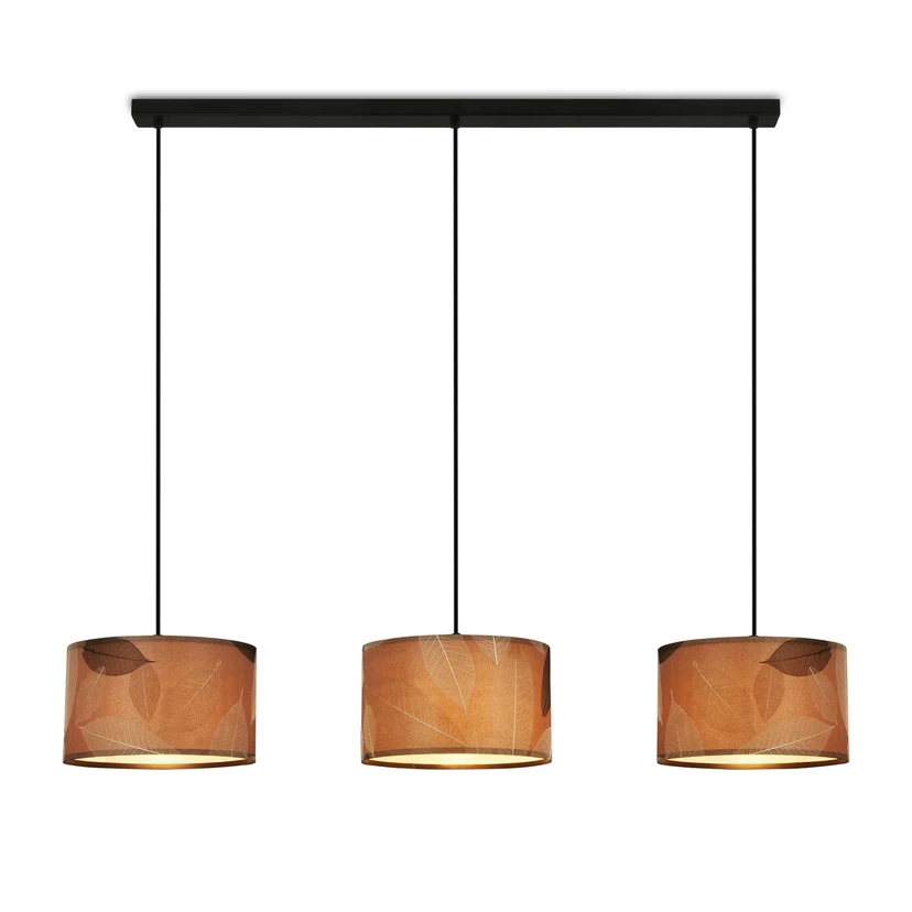 Závesné svietidlo Mata, 3 svetlá, hnedá farba, látka, E27